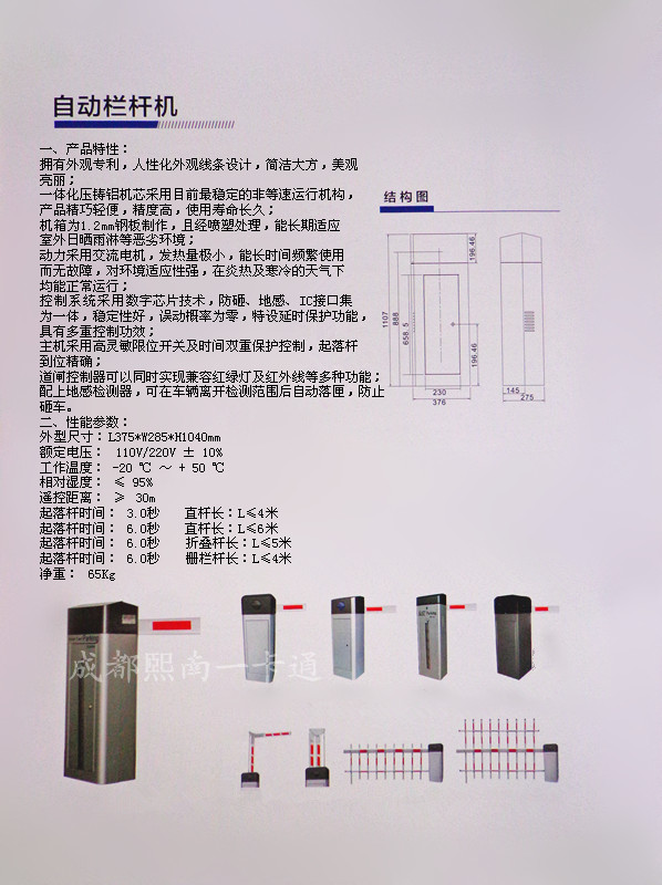 起落杆时间: 6.0秒   栅栏杆长:L≤4米