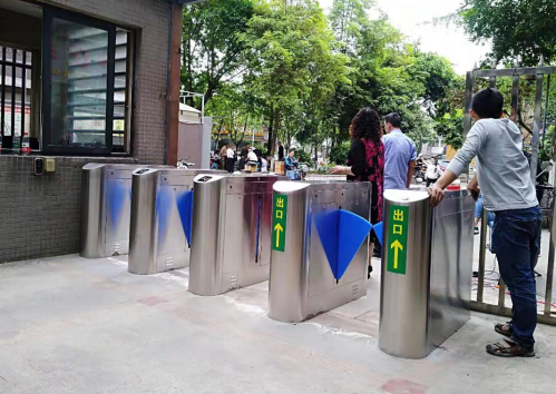 别开闸。现场安装五台翼闸(即两台单机芯,三台双机芯),组成四个通道(