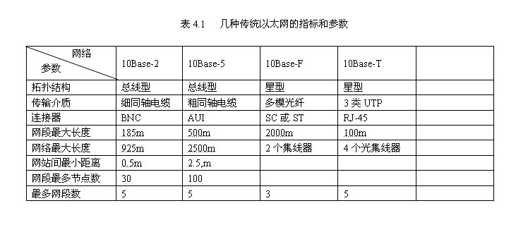 10Base-T标准规定的网络指标和今数如表4.1所示。